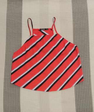 Top estilo halter de tejido tipo gass de H&M con cierre de boton al cuello (trasero) en color naranja coral (la última foto es la que mejor se ve el color), con forro, talla M. Hago descuentos por al compra de varios artículos de hasta un 40%! Echa un vistazo a mi perfil😊