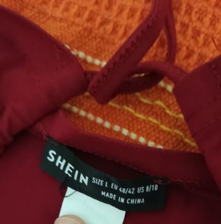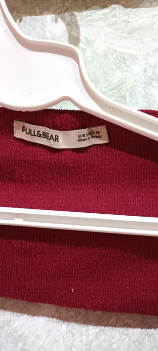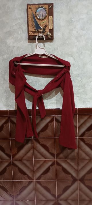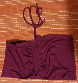 Top granate que se ata en el cuello y es abierto por delante. Se ha usado una vez.