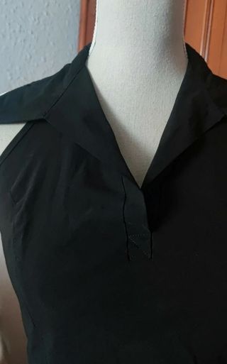 Elegante top de vestir. - Diseño sin mangas. - Cuello camisero con escote halter - Corte favorecedor.abrochado a un lateral con cremallera invisible.