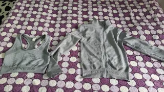 Conjunto deportivo gris: top y chaqueta