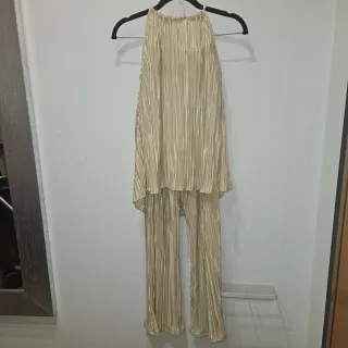 Conjunto Top y Pantalón Plisado Beige T. XL