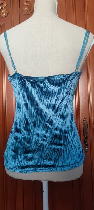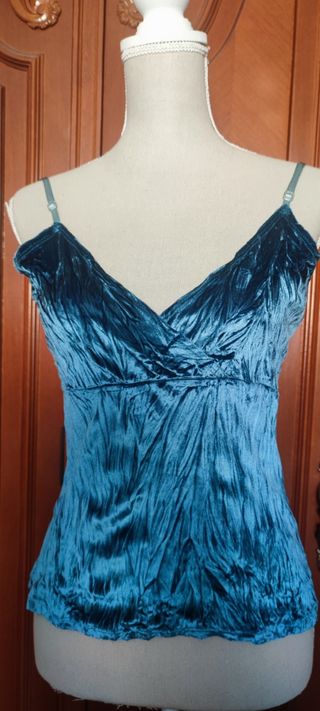 Elegante top de fiesta con un bonito acabado de terciopelo arrugado,tirantes graduables y elasticos,terciopelo elástico y ajustado al cuerpo. - Escote en pico cruzado.