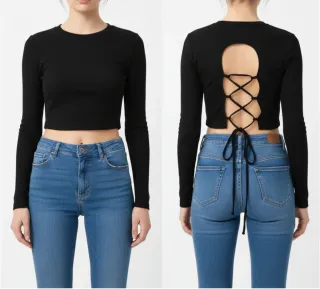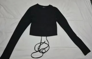 Top negro de Bershka con un diseño moderno y atrevido. - Manga larga. - Corte crop. - Detalle de lazada en la espalda. - Escote redondo.