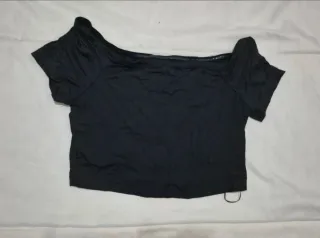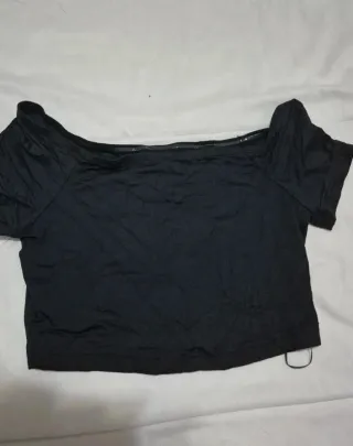 Crop top negro manga larga escote