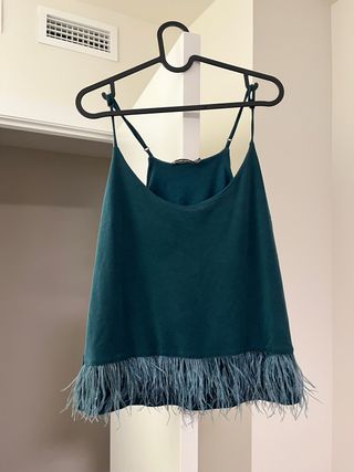 Top tirantes verde con plumas