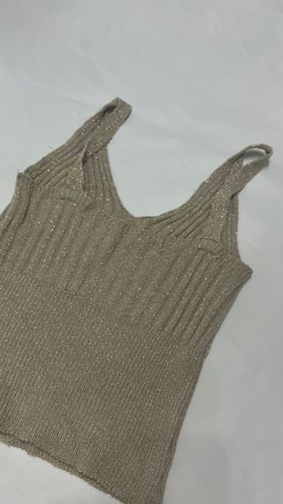 Top de Stradivarius con un diseño moderno y detalles brillantes. - Tejido acanalado. - Acabado con destellos de brillo.