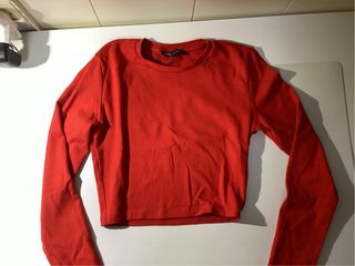 Zara Top Rojo Manga Larga Talla M