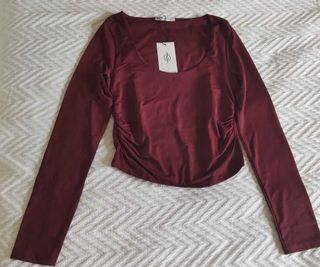 Top corto en color granate. Nuevo, con etiqueta. - Diseño de manga larga. - Detalle fruncido en laterales. Muchos artículos en mi perfil!!!