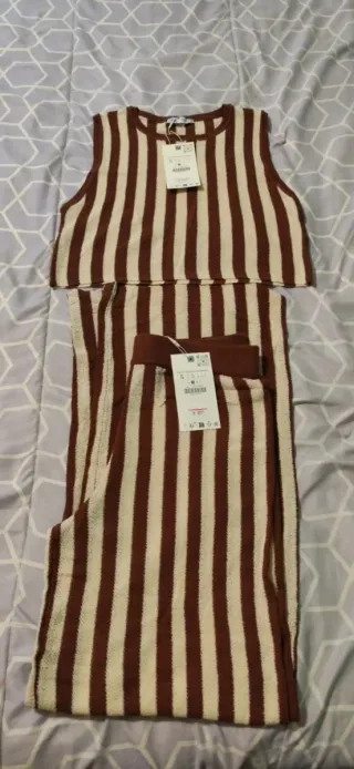 Conjunto de dos piezas con top sin mangas y pantalón largo. - Diseño de rayas verticales. - Tejido de punto.