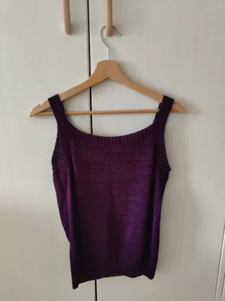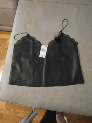 Top con tirantes finos y escote pronunciado. - Diseño tipo corsé. - Material con acabado efecto piel. - Color morado intenso. Talla M pero talla pequeña, más bien es para chicas que utilicen la S.