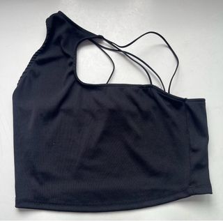 Top negro de Zara con diseño asimétrico. - Tejido elástico - Talla S. - Sin estrenar.