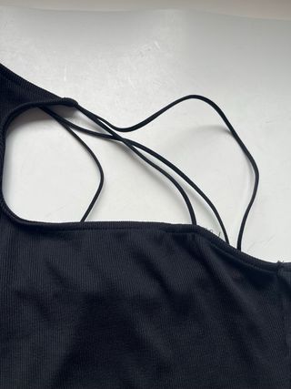 Top negro de Bershka con diseño asimétrico. - Tejido acanalado. - Tirantes finos. - Corte moderno.
