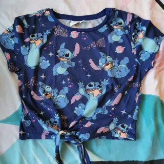 Crop top con estampado de Stitch. En la etiqueta pone xs, también vale a S - Diseño con temática espacial. - Parte inferior anudada.
