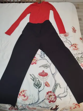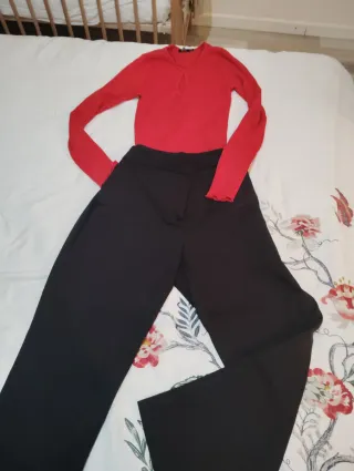 Conjunto de dos piezas para mujer. - Top de manga larga en color rojo. Bershka M - Pantalón de vestir en color negro. Zara XXL