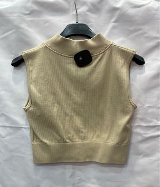 Top sin mangas de tejido acanalado con cremallera frontal y cuello alto. Ideal para actividades deportivas o como prenda casual. - Diseño de canalé. - Cremallera completa. - Cuello alto.