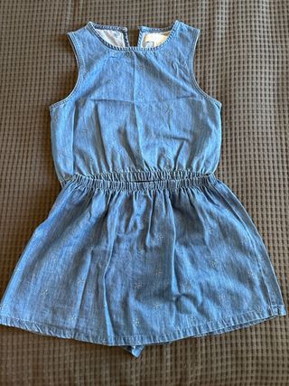 Conjunto de top sin mangas y falda vaquera con estampado floral. - Cintura elástica. - Detalle de flores bordadas.