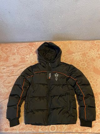 Chaqueta Trapstar London Original, color negro con detalles en naranja y logo bordado en pecho y espalda. Modelo acolchado (puffer) con capucha, muy abrigada y cómoda para invierno. Está en muy buen estado, apenas usada, sin manchas ni roturas (ver fotos). Cierre con cremallera, puños elásticos y diseño streetwear muy top 💸Precio negociable 📦Envío rápido Cualquier duda, pregúntame sin compromiso.