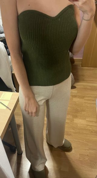 Top de punto en color verde. Diseño sin tirantes y con escote en forma de corazón. precio original 19,99 - Tejido elástico y acanalado. - Largo hasta la cadera.
