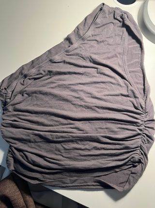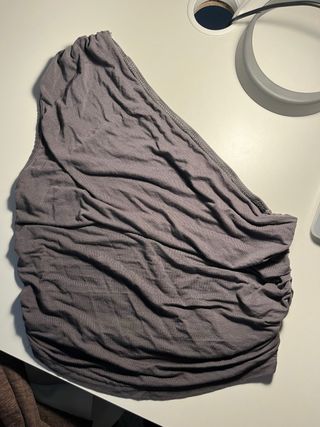 Top corto de una manga en color gris. Su diseño drapeado le da un toque moderno y favorecedor. - Tejido suave y elástico. - Diseño de una manga asimétrica. - Detalle drapeado en el lateral.