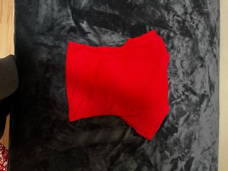 Top de color rojo con un diseño moderno y atrevido. - Espalda descubierta. - Corte asimétrico.