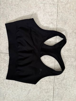 Top deportivo de tejido elástico y cómodo. - Diseño sin costuras. - Banda ancha en la cintura para mayor sujeción. - Tirantes cruzados en la espalda.