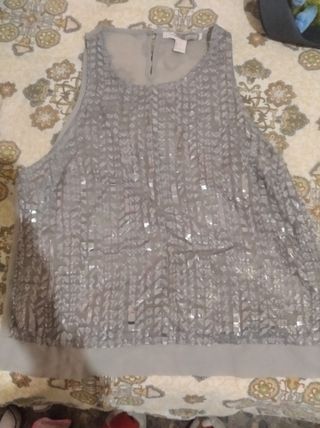 Elegante top de lentejuelas con un diseño llamativo. - Color beige y plateado. - Talla S. - Marca Forever 21. Sin etiqueta pero nuevo