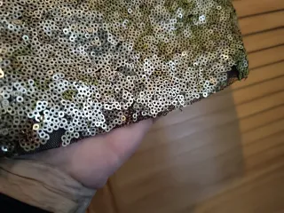 Elegante top sin mangas con lentejuelas doradas y un acabado brillante. Perfecto para ocasiones especiales. - Diseño con escote en V. - Detalle de banda inferior en tejido suave.