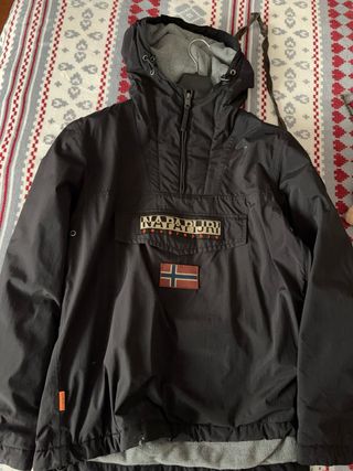 Chaqueta Napapijri en color negro, un basico icónico que combina con absolutamente todo y nunca pasa de moda Es el modelo Rainforest con forro polar interior, súper gustosa y perfecta para protegerte del frío y la lluvia con estilo Corte clásico con el mítico bolsillo central, ideal para un look casual y todoterreno. Esta muy bien cuidada, con los detalles y parches impecables. Diseño en color negro. - Detalle de parche con logo y bandera. - Capucha ajustable.