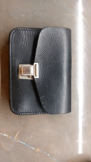 Monedero de cuero con cierre metálico. - Material: Cuero. - Cierre: Metálico.