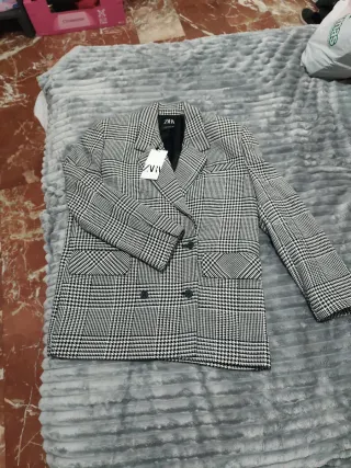 Chaqueta de vestir con estampado de cuadros. - Diseño de doble botonadura. - Bolsillos frontales. - Cuello solapa.
