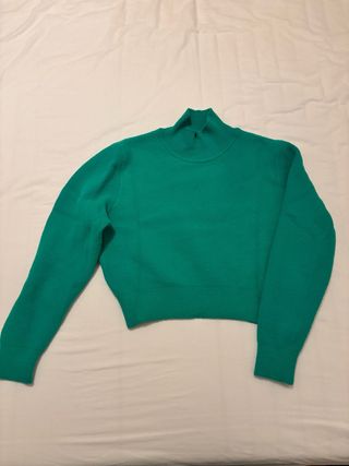Jersey de punto de Zara en color verde. - Diseño de cuello alto. - Manga larga. - Corte cropped. - Corto