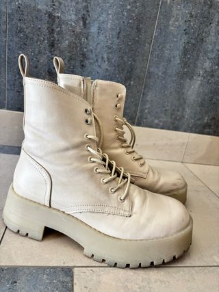 Botas de estilo moderno con suela de plataforma. - Cierre de cordones. - Detalle de cremallera lateral. - Tiradores en la parte superior.