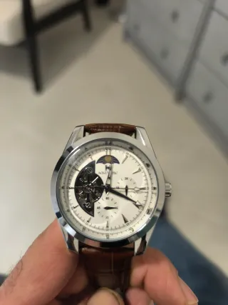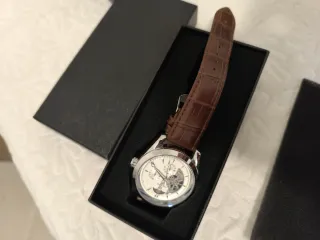 Elegante reloj con correa de cuero. - Diseño de esfera abierta. - Detalles en tono plateado. - movimiento automático con recarga manual segul