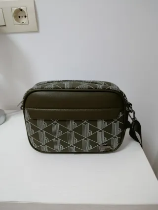 Bolso bandolera con un diseño geométrico en tonos verdes y blancos. El material principal es liso y el detalle del logo se encuentra en la parte frontal. - Diseño con estampado geométrico. - Detalle del logo de la marca.