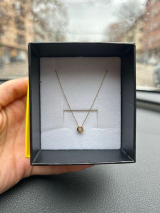 Elegante colgante de oro con un diamante central. - Diseño delicado y atemporal. - Cadena fina. - Presentado en caja. - Tarjeta de autenticación. - Comprado hace menos de un año. - Precio rebajado la mitad.