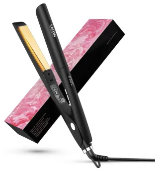 Plancha de pelo con un elegante diseño en negro y rosa. Está nueva sin desprecintar. - Placas de calentamiento. - Pantalla digital de temperatura.