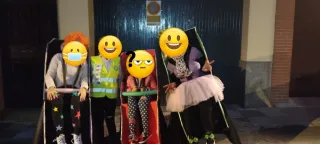Conjunto de disfraces de carnaval. Dos de adultos y dos niños de vagoneta de montañas rusas - Diseños variados y llamativos. - Apto para diversas ocasiones festivas.precio del conjunto los 4