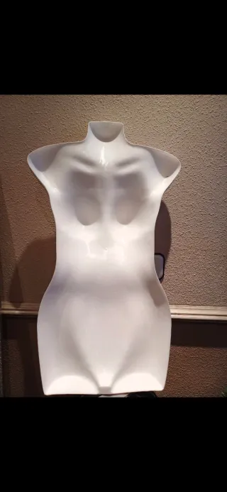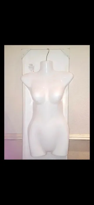 Se venden dos maniquíes de torso de mujer. - Color blanco brillante. - Diseño elegante para exhibición. Traen sus ganchos para colgarlos y la parte trasera es hueca es de plástico duro que no se dobla muy resistente