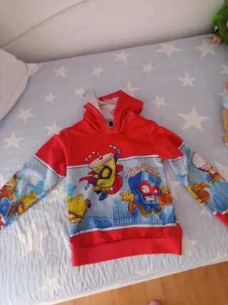 Sudadera con capucha y estampado de Super Zings. - Talla 120 cm. - Diseño multicolor con personajes. - Mangas largas.