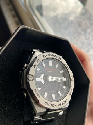 Reloj Casio G-Shock GST-B500D-1A con conectividad Bluetooth y resistencia al agua de 200 metros. Se vende tal cual las fotos -Bluetooth - Módulo 5684. - Incluye tarjeta de garantía internacional sin sellar - Caja hexagonal metálica. - 20atm resistencia al agua -Brazalete de acero -Muy poco uso -Leves marcas de uso en el cierre o bisel poco apreciables Muy poco uso, conecta por bluetooth al movil para cambiar la hora y configurar alarmas perfectamente, su pvp es de 299€