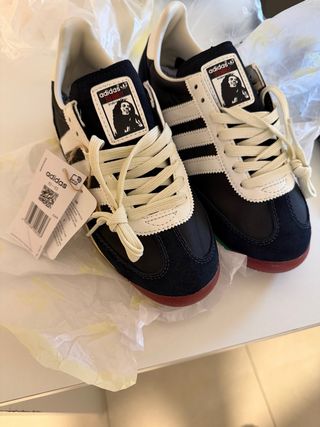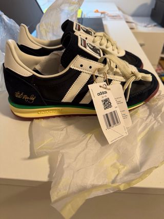 Zapatillas Adidas edición especial Bob Marley, a estrenar porque le quedan pequeñas a mi hijo. A tener en cuenta..Son un 39 pequeño. - Diseño icónico con detalles en gamuza. - Cordones de color crema. - Suela con toques de color.