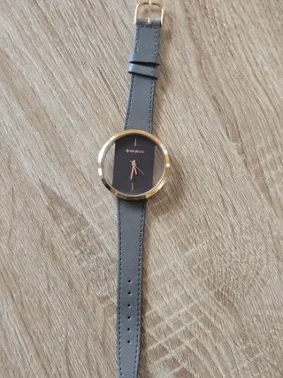 Elegante reloj Bilyfer con un diseño moderno y sofisticado. - Esfera con detalles rayados. - Correa de cuero. - Bisel dorado. - Pila nueva funcionando perfectamente