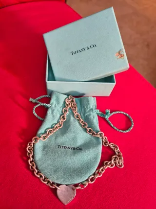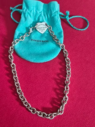Elegante colgante de Tiffany & Co. con forma de corazón. - Diseño clásico de la marca. - Cadena de eslabones gruesos. - Cierre de mosquetón.