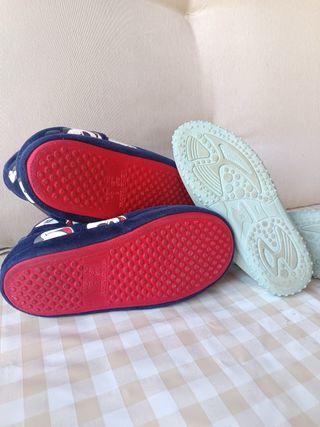 Comodísimas zapatillas de estar por casa con un diseño original. - Exterior con estampado de rombos en azul, blanco y rosa. - Interior forrado en suave tejido azul. - Suela antideslizante.
