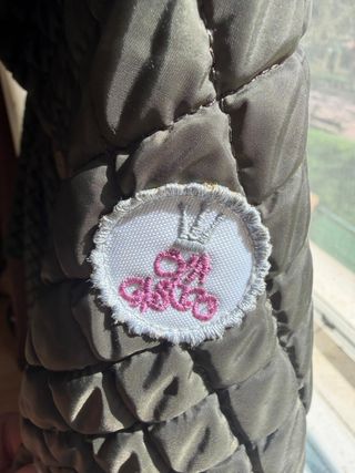 Chaquetón acolchado con forro interior rosa. - Diseño acolchado con rombos. - Detalle de corona bordada en la solapa. - Cierre de botones. - Forro interior suave y cálido.