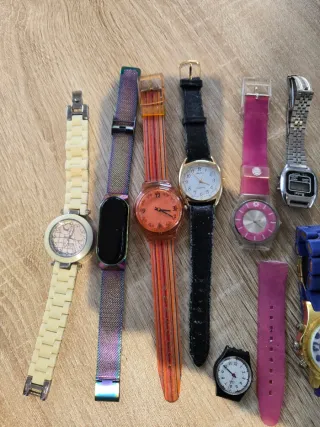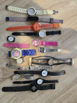 Lote variado de quince relojes y piezas. - Diversos estilos y diseños. - Combinación de correas y esferas. - Se venden sin comprobar - Como en las fotos