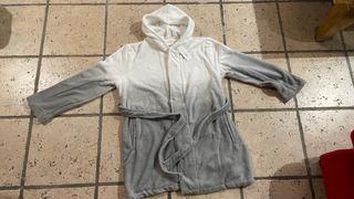Bata con capucha Woman Secret, talla X L. Nuevo con etiquetas sin estrenar color gris degradado. Bastante calentita y con pelitos por dentro. - Diseño degradado de blanco a gris. - Cinturón para ajustar. - Bolsillos