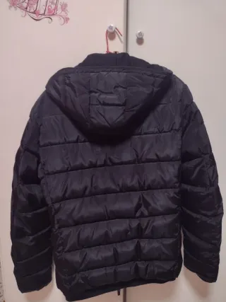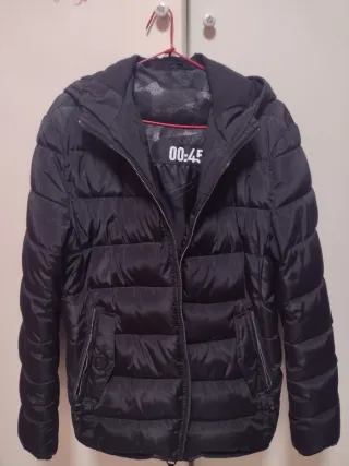 Plumífero negro con capucha, ideal para el frío. - Cierre de cremallera. - Bolsillos laterales con cremallera. - Diseño acolchado con capucha. Es nuevo.