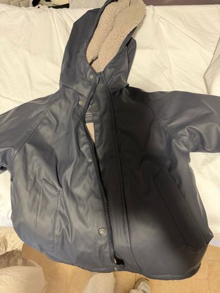 Chubasquero forrado, con puños. Nuevo sin estrenar. - Diseño con capucha. - Cierre de cremallera y botones. - Bolsillos frontales.