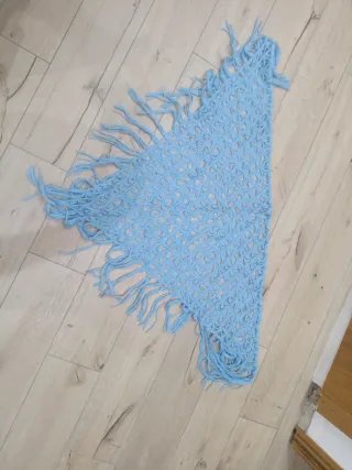 Preciosa mantilla vintage tejida a mano con un delicado diseño. - Estilo triangular. - Adornada con flecos. - Ideal como accesorio.